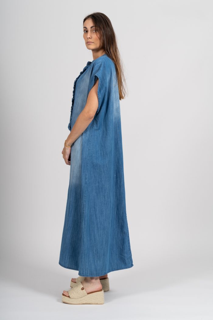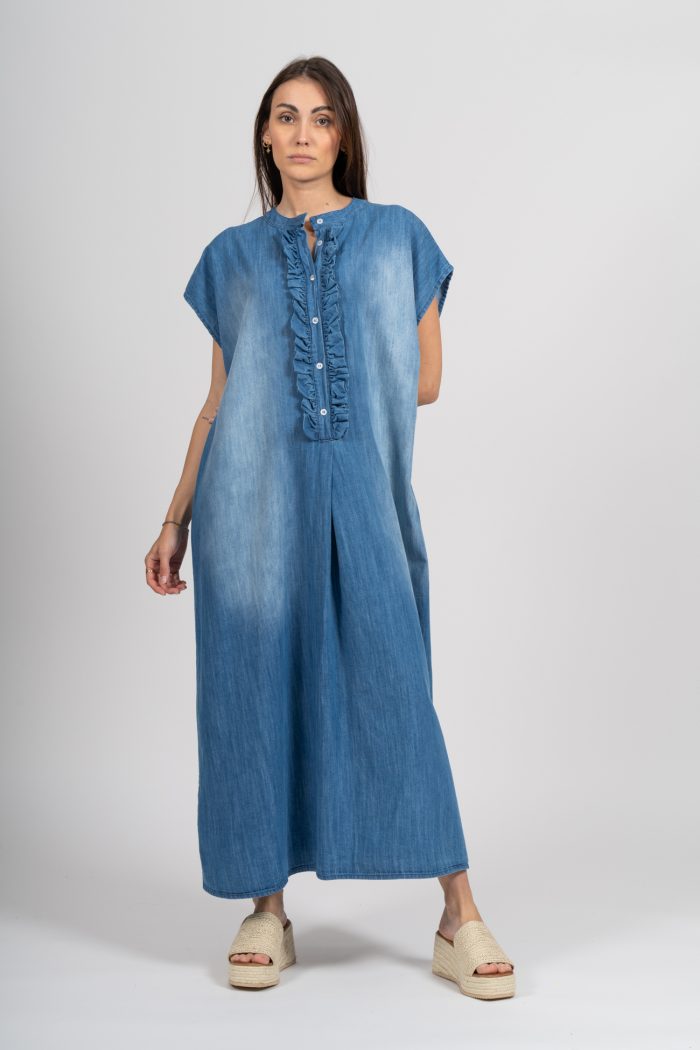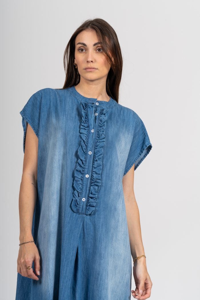 Avec sa coupe fluide et légèrement oversize, elle convient à toutes les morphologies et se porte aussi bien avec des baskets pour un look casual, qu’avec des sandales pour une silhouette plus bohème. Son tissu effet jean apporte une touche d’authenticité tout en restant léger et agréable à porter.